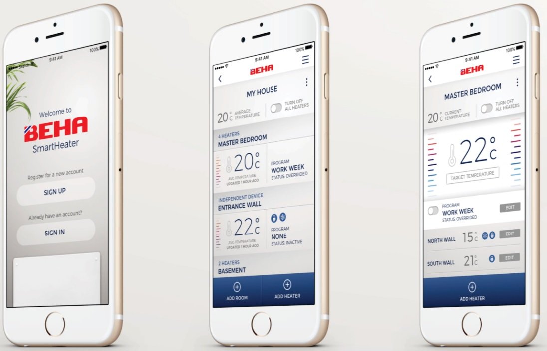 BEHA akıllı elektrikli ısıtıcılar, dahili Wi-Fi teknolojisi ile donatılmıştır. Bu sayede ev ve iş yerlerindeki ısıtma sistemleri, mobil telefon veya tablet üzerinden kolayca yönetilebilir.